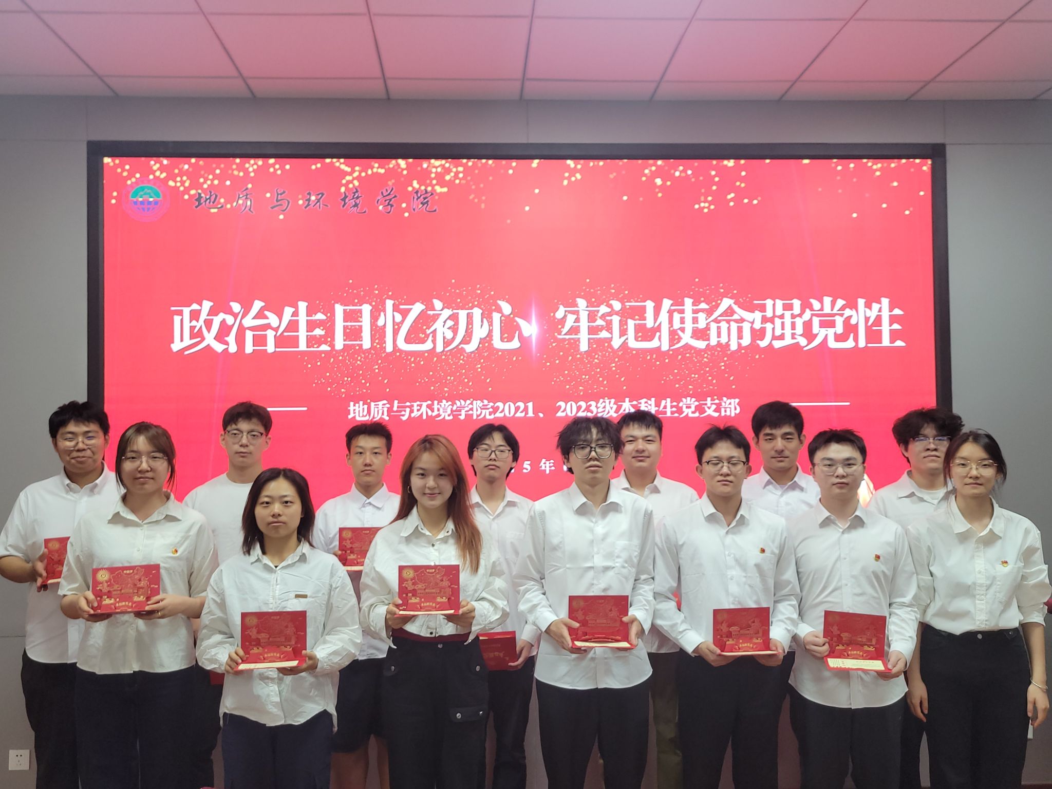 近日,地质与环境学院2021、2023级本科生党支部举行“政治生日忆初心,牢记使命强党性”主题党日活动。支部书记陈艳丽主持活动,2021级全体党员、2023级发展对象及入党积极分子参加党日活动。