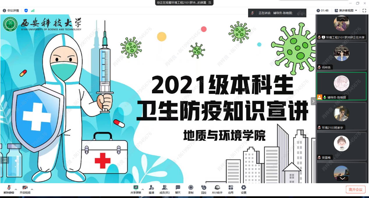 近期,为增强学生健康防护意识、筑牢校园安全保障防线,学院2021级本科生开展春季卫生防疫知识宣讲会。会议由辅导员陈艳丽主持,全体学生参会。