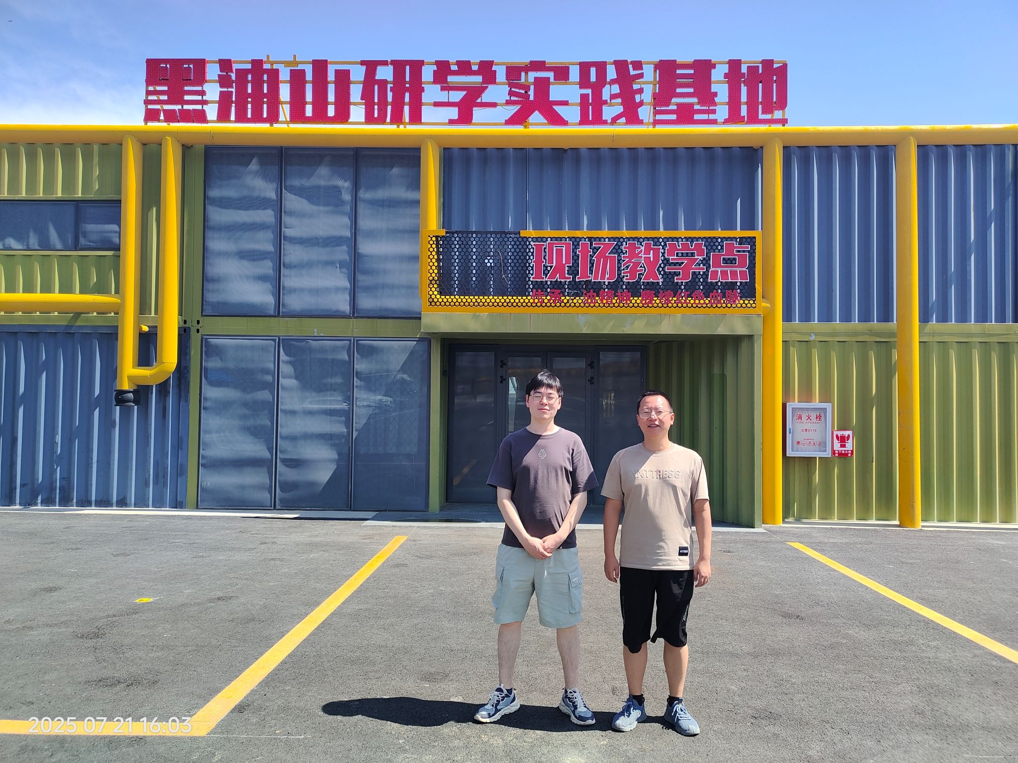 实践团第四小分队还前往新疆克拉玛依地区东北部,对油田重要油苗露头处进行调研。期间,团队深入探究了黑油山的地质成因,系统学习了原油勘探与开采的相关方法,并聆听了克拉玛依油田的发展历史,对当地石油资源开发历程有了清晰认识。