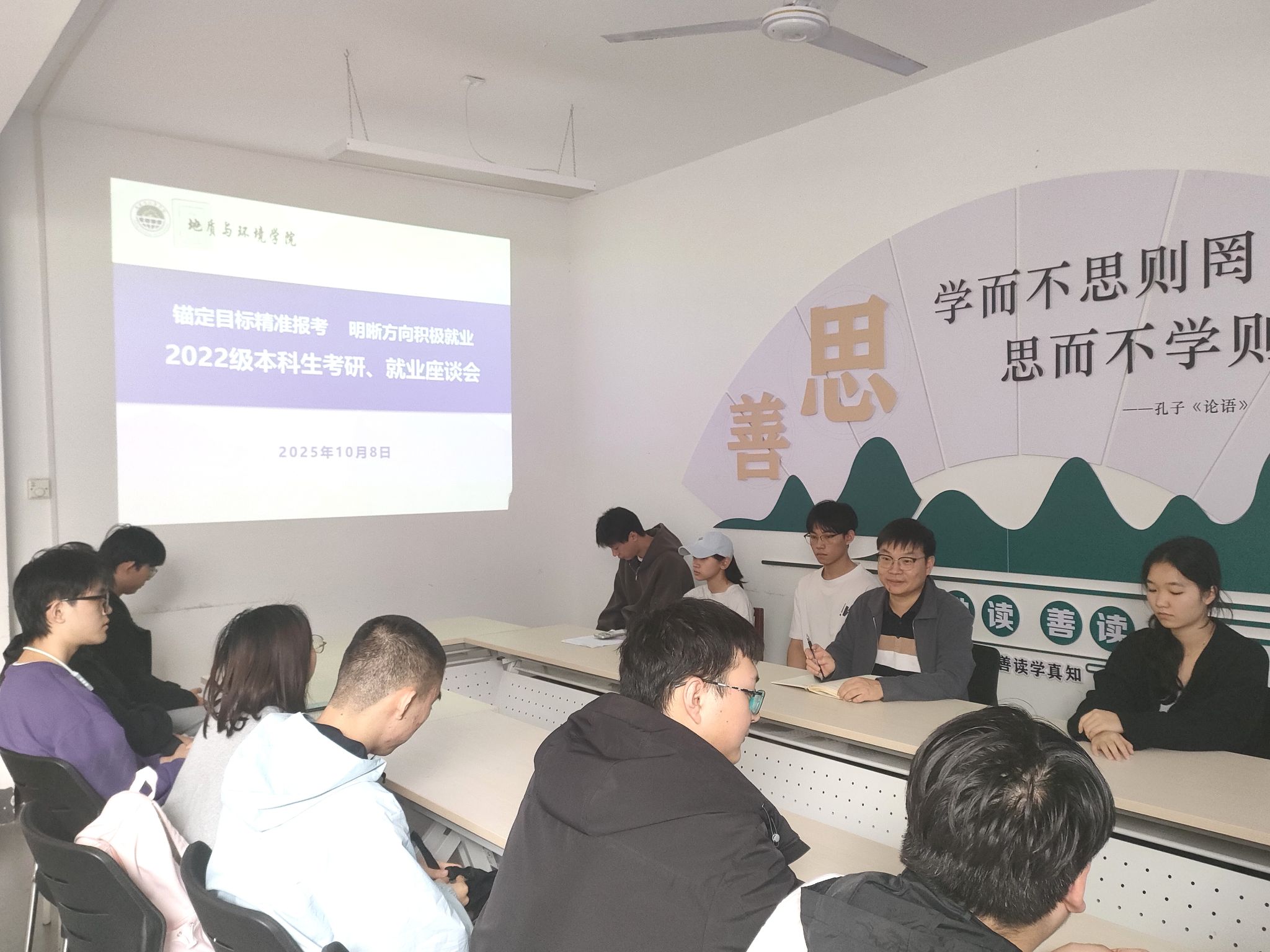 10月8日,学院在“一站式”学生社区召开2022级本科生考研、就业座谈会,2022级本科生代表20余人参会,会议由带班辅导员余小涛主持。