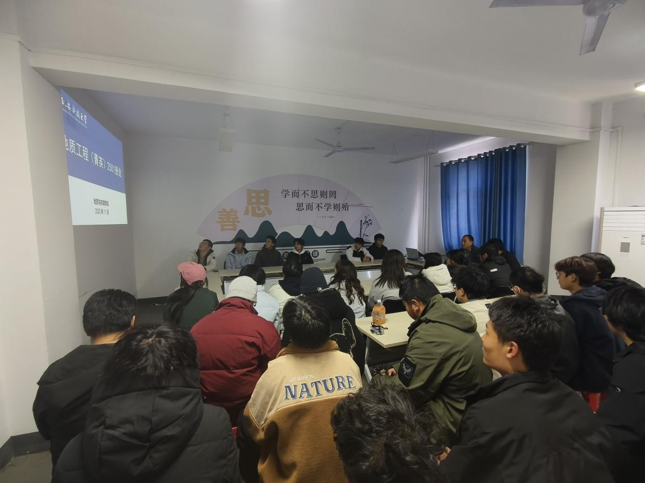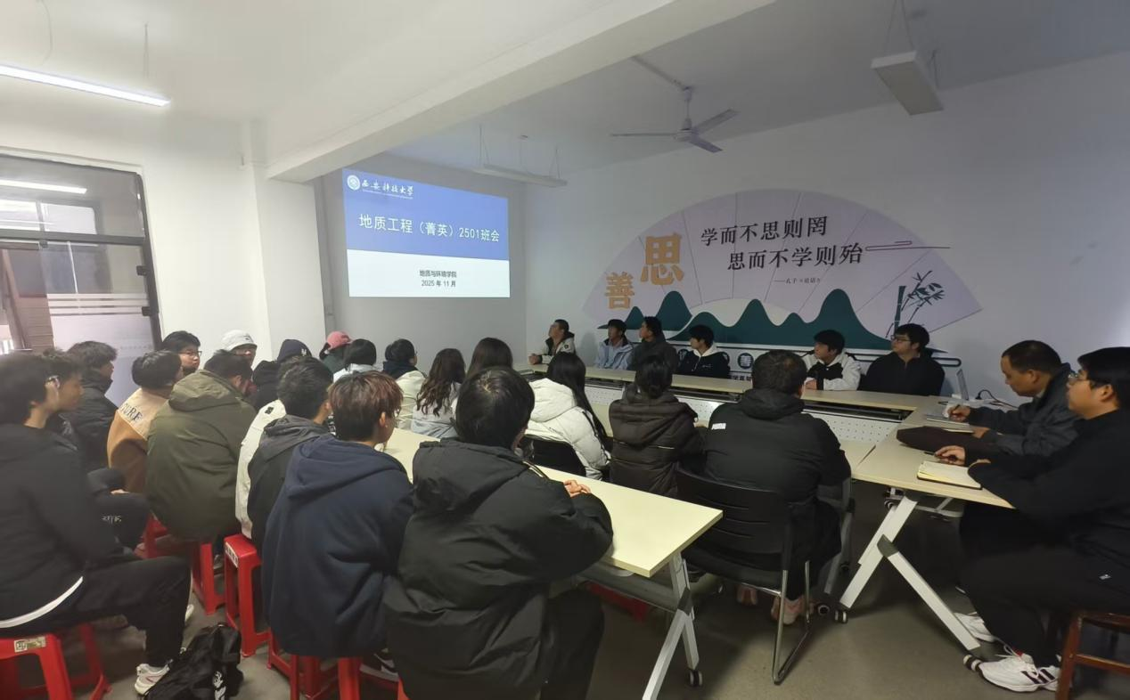 11月17日,地质工程(菁英)2501班主题班会在“一站式”学生社区召开。班会由副院长、菁英班班主任赵洲教授主讲,地质工程(菁英)2501班全体学生参会。
