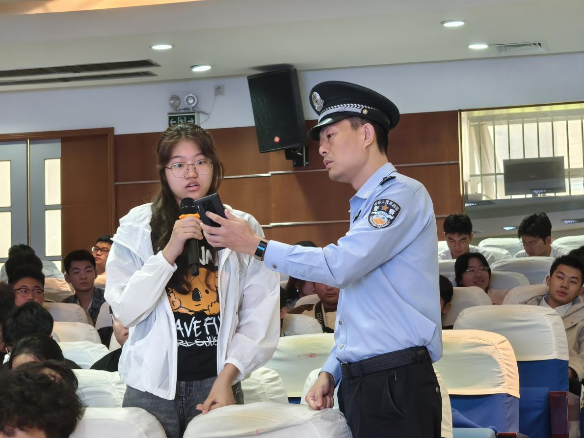肖胜权聚焦当前高发的新型网络诈骗类型,通过真实案例剖析、诈骗手法揭秘等方式,系统讲解了电信网络诈骗的识别与防范技巧。在互动环节中,同学们积极参与案例研判,现场气氛热烈,通过实际案例分析进一步提升了反诈意识和辨骗能力。
