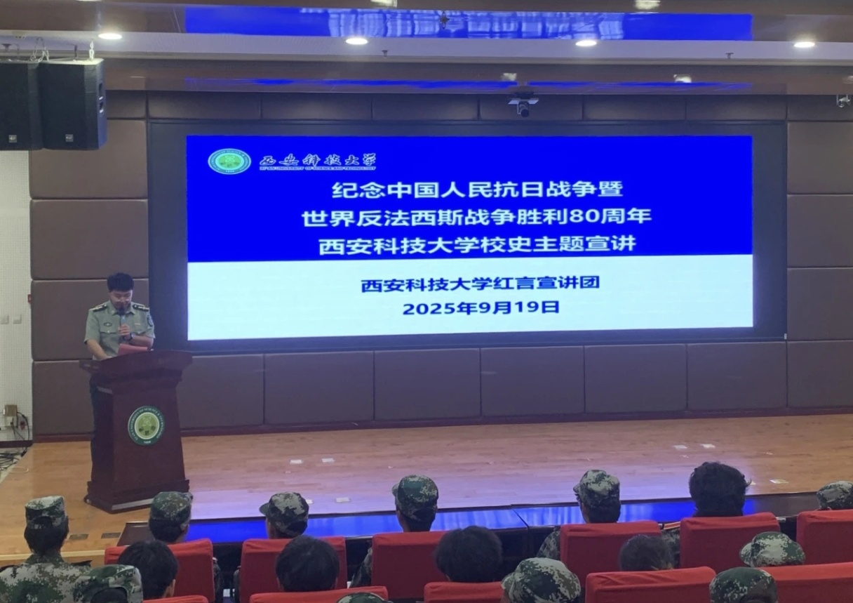 为深切缅怀革命先烈,弘扬伟大抗战精神,9月19日下午,地质与环境学院与理学院于临潼校区骊山校园联合举办“纪念中国人民抗日战争暨世界反法西斯战争胜利80周年”主题宣讲活动。活动特邀马克思主义学院红言宣讲团担任主讲。地质与环境学院2025级辅导员周佳瑞、理学院2025级辅导员段佳出席,两院2025级全体本科生共同参与。活动由地质与环境学院2025级辅导员周佳瑞主持。