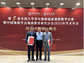 10月24至10月26日,由中国地质学会主办,中国地质学会地质教育研究分会联合中山大学承办的第五届全国大学青年教师地质课程教学比赛暨中国地质学会地质教育研究分会2025年学术年会在中山大学(珠海校区)举行。来自全国68所地质类高校的160位青年教师参加了比赛。我院院长孙学阳教授担任大赛组委会委员、薛喜成教授担任大赛专家组成员,副院长陈应涛带领赵晓辰、尚慧和姜鹏飞三位青年教师参加了比赛,最终突破性的取得了特等奖1项,一等奖2项。